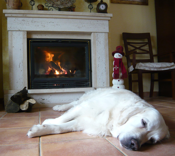 Despues de Jugar un rato con la nieve no hay nada como una siestecita junto a la chimenea....